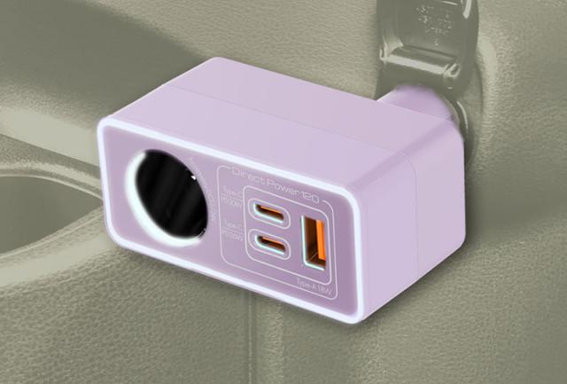 3USB(Type-C×2(PD)+USB-A(QC etc))で様々なデバイスが同時に充電できる。DC12V/24V兼用カーソケット付き