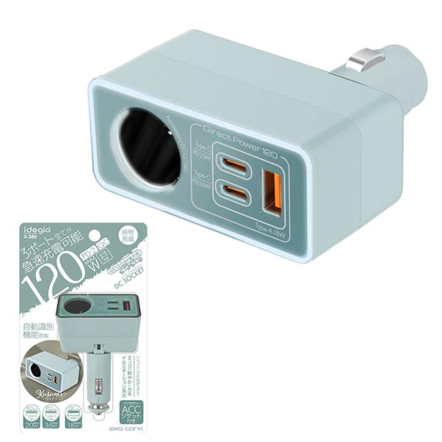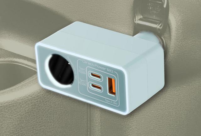 3USB(Type-C×2(PD)+USB-A(QC etc))で様々なデバイスが同時に充電できる。DC12V/24V兼用カーソケット付き