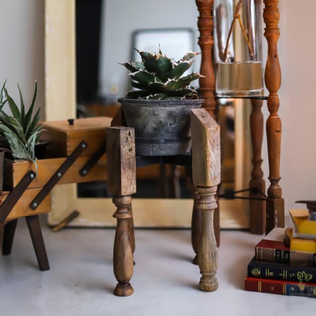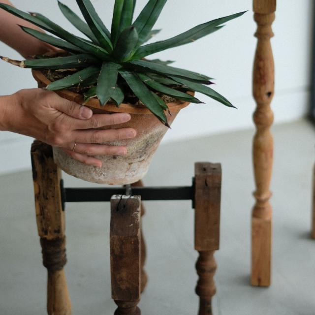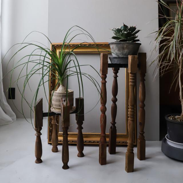 古材の温もりとアイアンのスタイリッシュさが融合した植物スタンド。