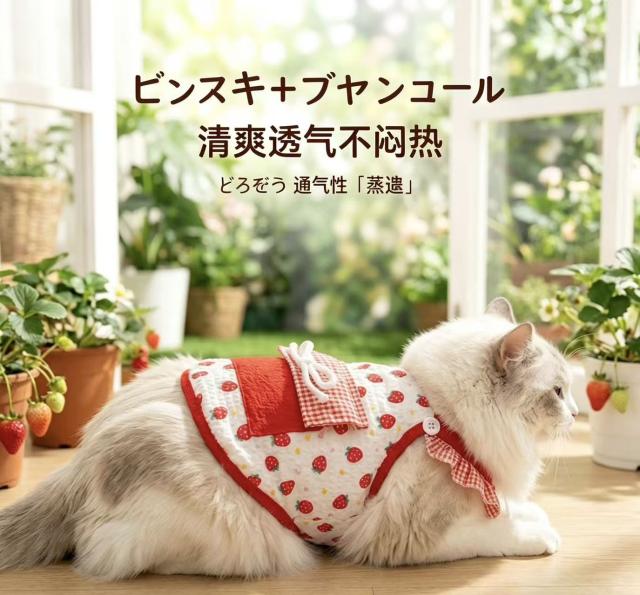 猫用 夏服 いちご柄 キャミソール 涼感 通気性 小型犬兼用 おしゃれ 可愛い