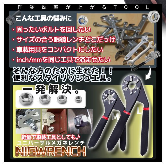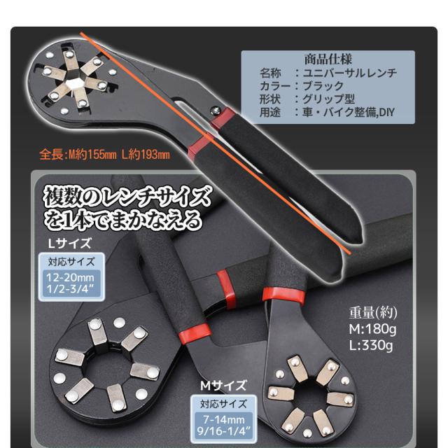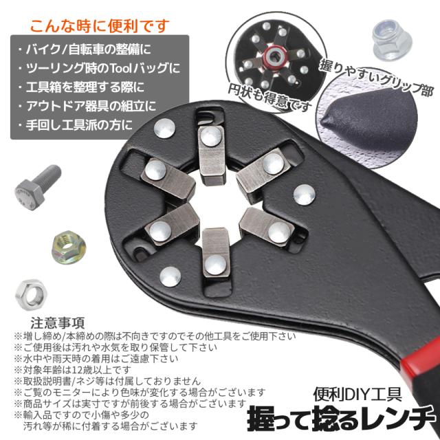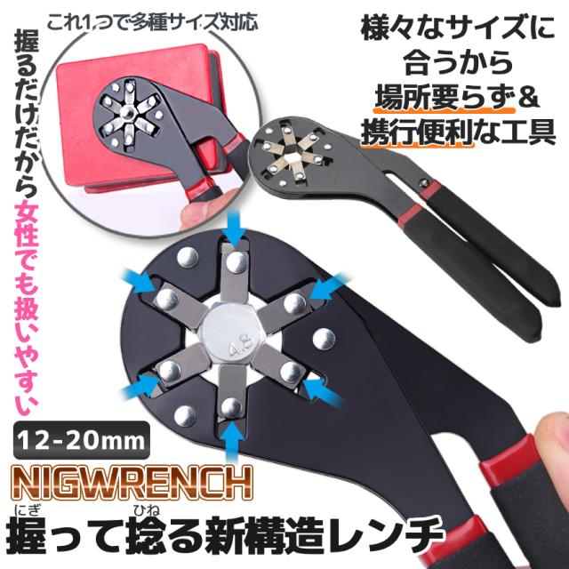 万能レンチ 六角 レンチ 大 12-20mm 軽量 スパナ マジックレンチ 握る サイズ 調整 調節 握るレンチ ユニバーサルレンチ メガネレンチ ナット ボルト 車 バイク 整備 DIY 工具 ツール インチ ミリ inch mm 携帯 持ち運び 便利 NIGWRENCH-L 送料無料