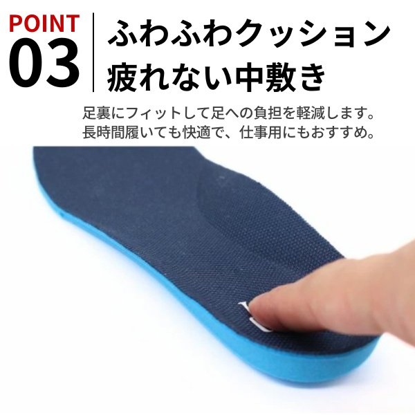 かかとを踏んでも履ける便利な2WAY仕様に加え、クッション性の高いカップインソールが足裏を優しく包み込み、長時間の歩行をサポートします。