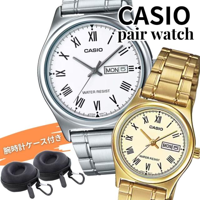 カシオ ペアウォッチ お揃い 腕時計 メンズ レディース シルバー ゴールド メタル 日付 曜日 CASIO 海外モデル シンプル ビジネス 夫婦 カップル プレゼント 収納ケース付き ペアギフト