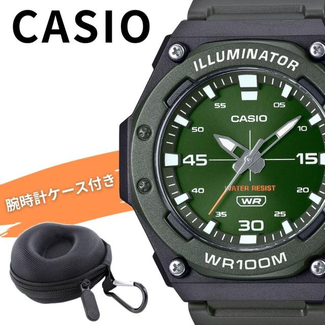 カシオ 腕時計 メンズ カーキ グリーン 防水 100m タフ 大きめ アナログ スポーツ アウトドア 見やすい CASIO 海外モデル 作業用 日常使い プレゼント 男性 収納ケース付き ギフト