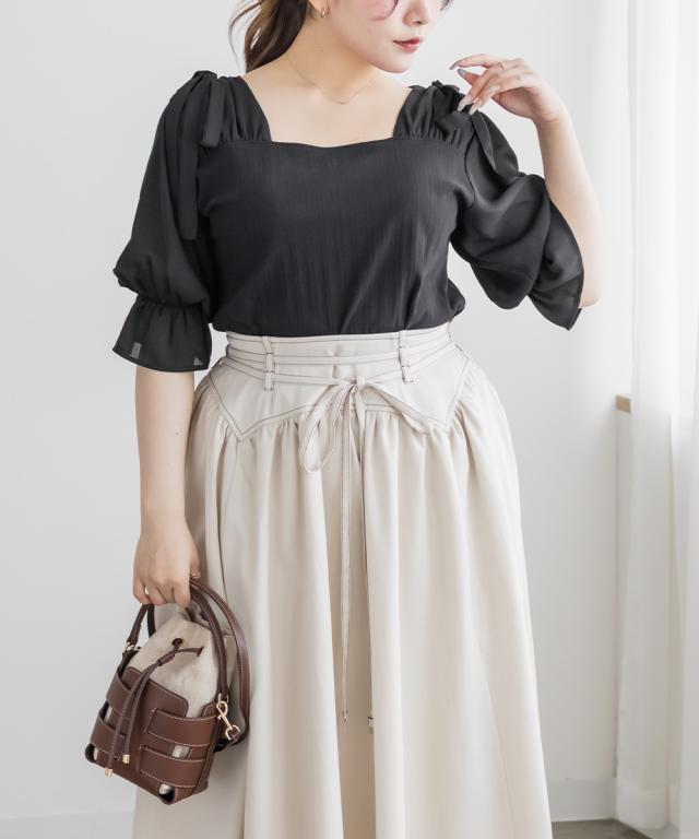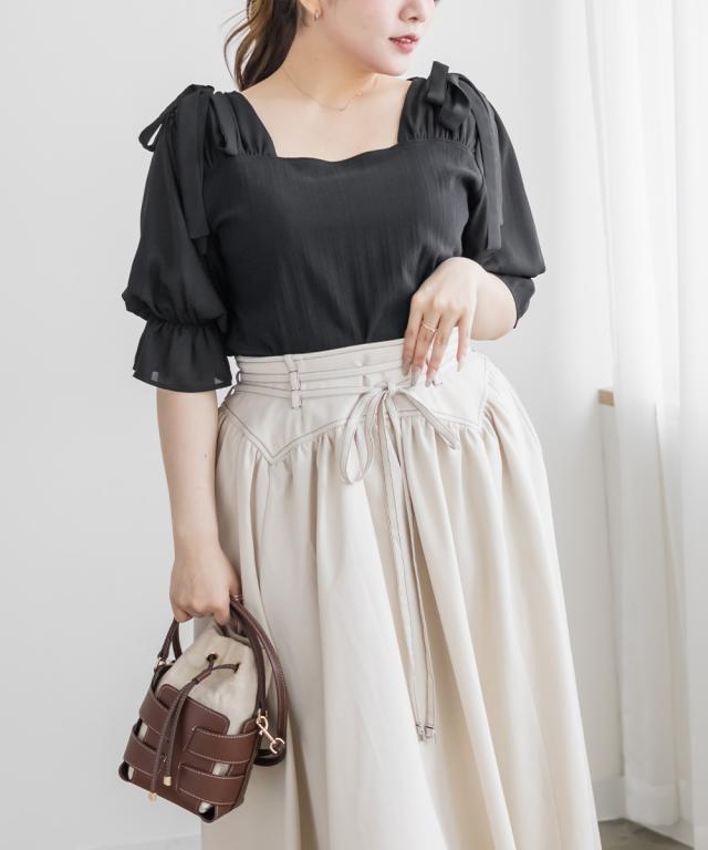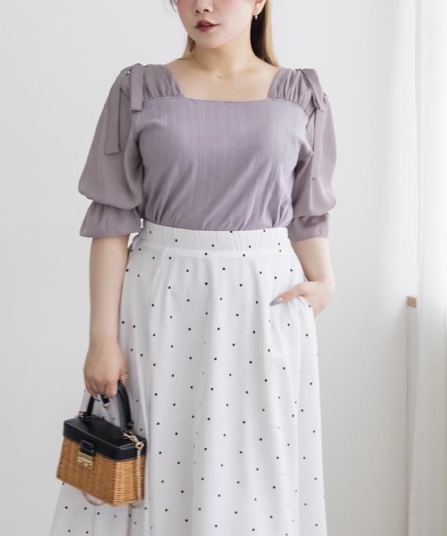 大きいサイズ/レディース/LL/3L/4L/CLETTEオリジナルスクエアネックショルダーリボントップス