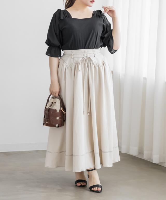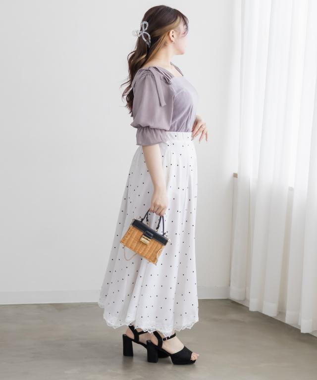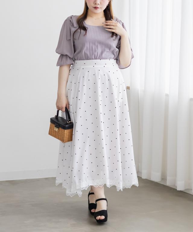 | 3Lサイズを着てみて丁度いいサイズでした。見頃は女性らしいランダムリブカットソー、袖がシアー感のある生地になっていてカジュアルになりすぎずにフェミニンな印象のアイテムです!スカートにもパンツにも合わせやすく、真夏でも涼しく着られそうです◎肩にリボンがついているのもガーリーで可愛く、お出かけにもおすすめの1枚です! |