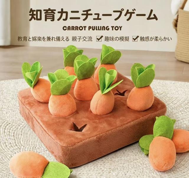 猫ちゃんもワンちゃんも大好きな、にんじんを抜いて遊ぶ知育おもちゃです。