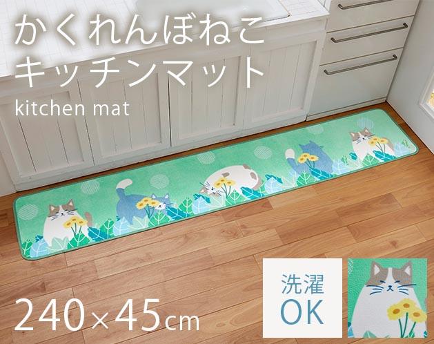 【かわいいニャンコに癒される ふわふわキッチンマット】 キッチンマット 猫 かわいい 滑り止め 水ハネ 防止 汚れ防止 / キッチンマット(かくれんぼ猫)