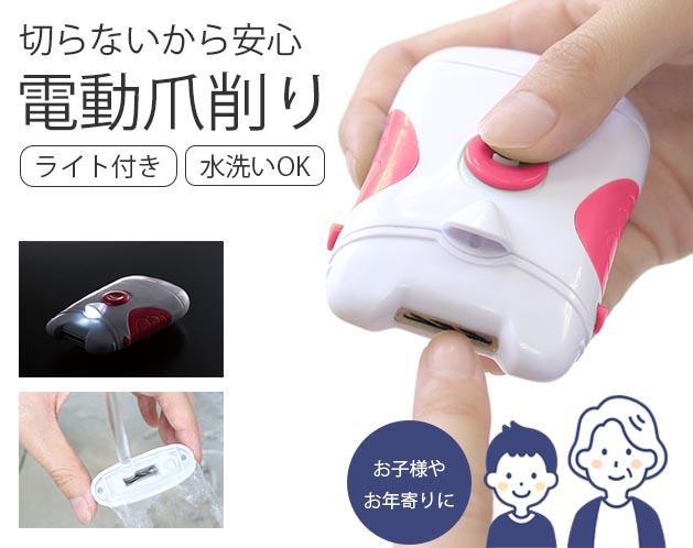 【押すだけ簡単♪安全&キレイに仕上がる電動爪削り】 電動爪削り ライト付き 安全 簡単操作 ネイルケア 水洗いOK 高齢者 子供 / ライト付き 電動爪削り