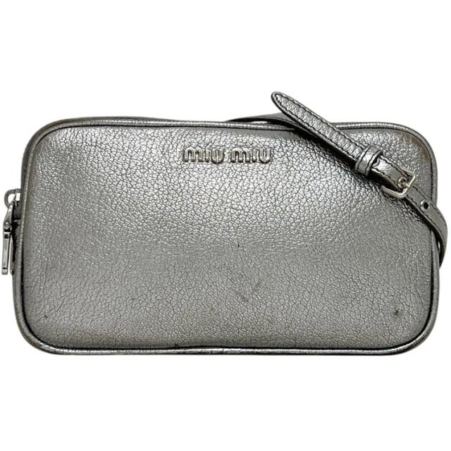 ミュウミュウ ミニ ショルダーバッグ シルバー 銀色 5ZH011 クロスボディ ポシェット レザー 中古 miu