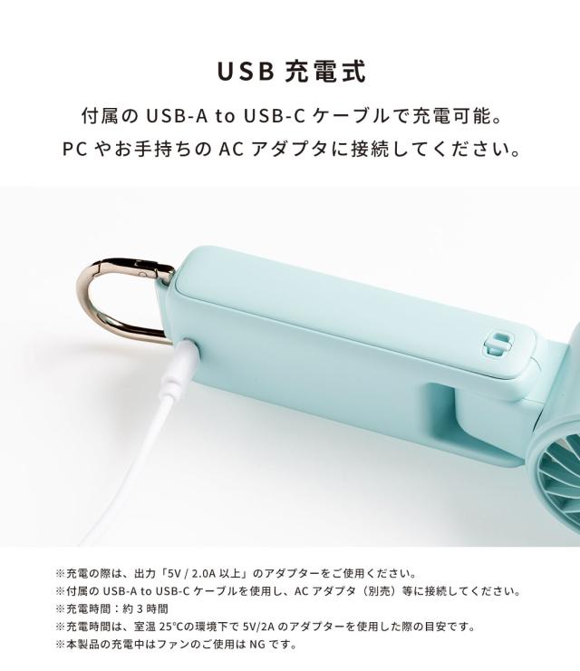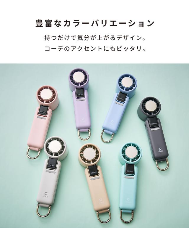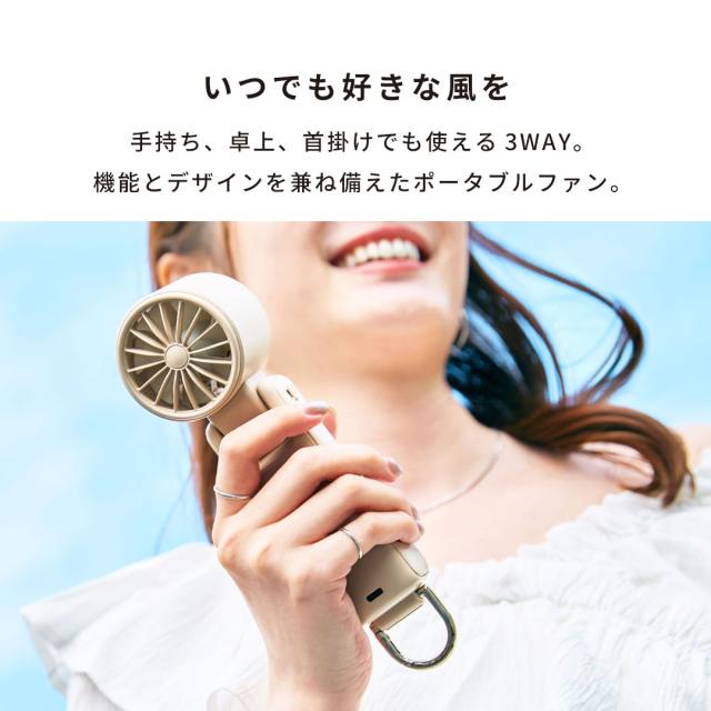 手持ちや卓上、首やバッグに掛けたり、どんなシーンでも使える3WAY仕様、7色のカラーバリエーション、風量の100段階調整と、機能もデザインも妥協したくない人にピッタリの多機能ポータブルファンです。
