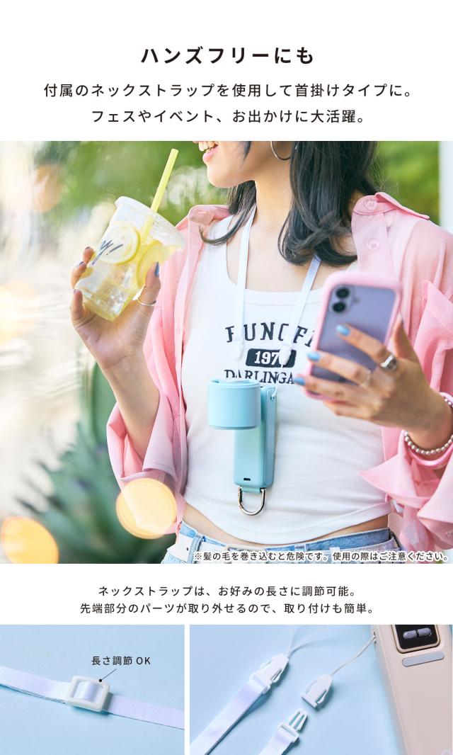 ・手持ち・首掛け・卓上で使用ができ、どこでも快適に