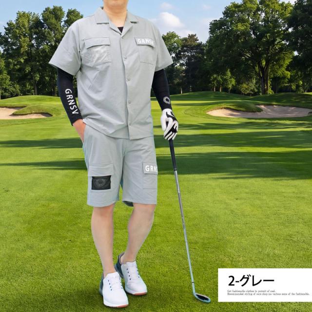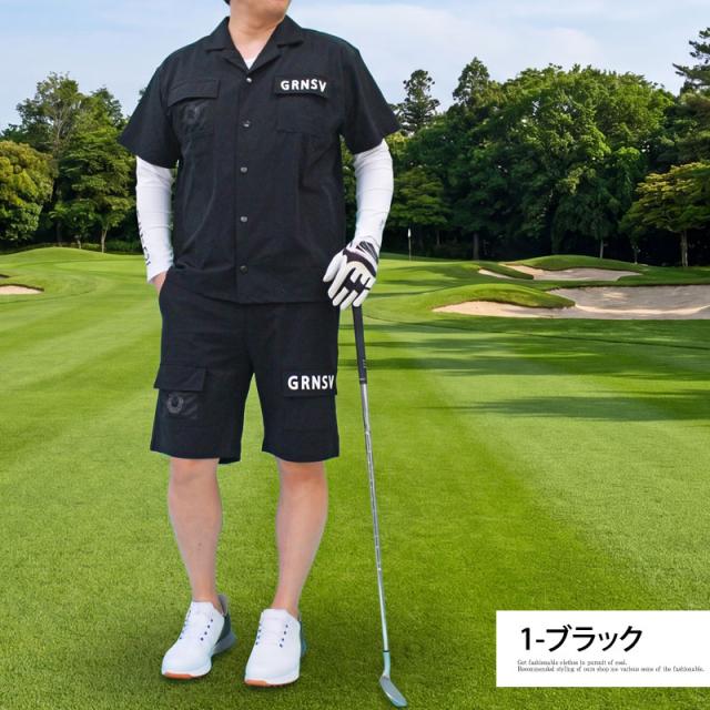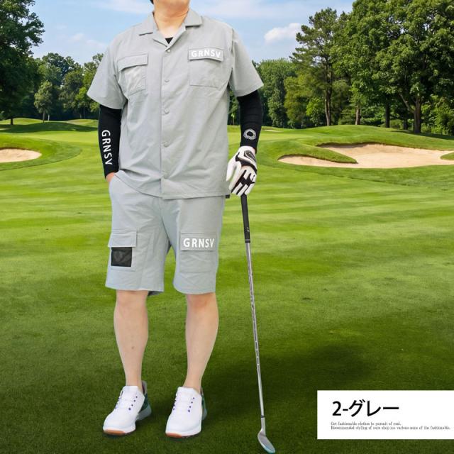 送料無料 ゴルフセットアップ メンズ 多機能 上下セット ゴルフウェア GIORNO SEVEN ジョルノセブン ゴルフショートパンツ ハーフパンツ オープンカラーシャツ ストレッチ おしゃれ 春夏