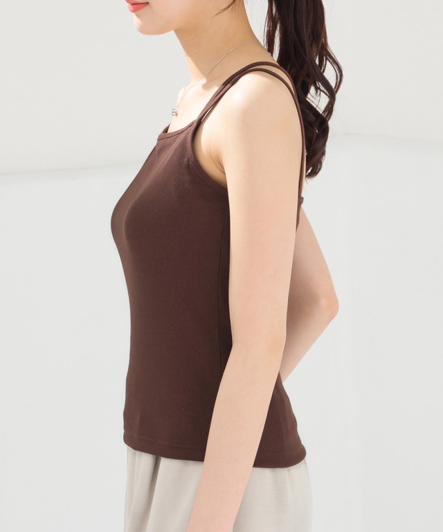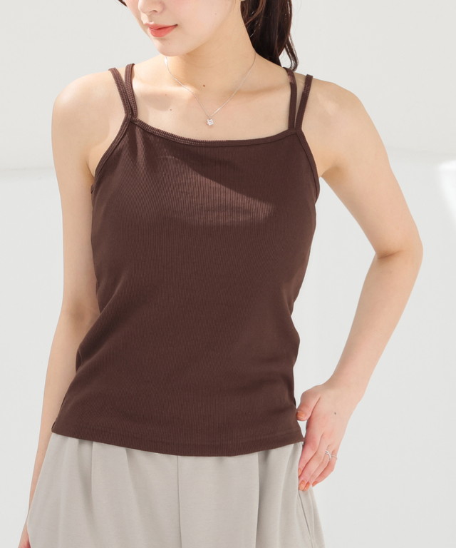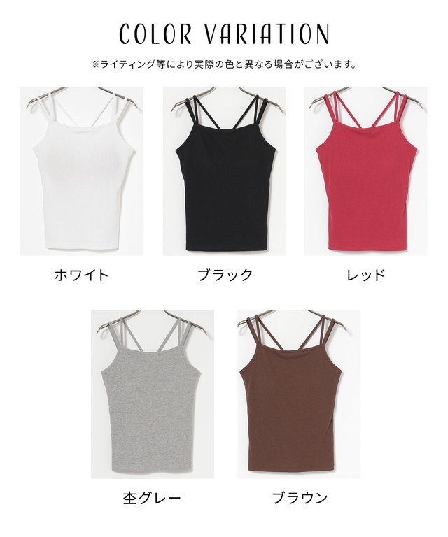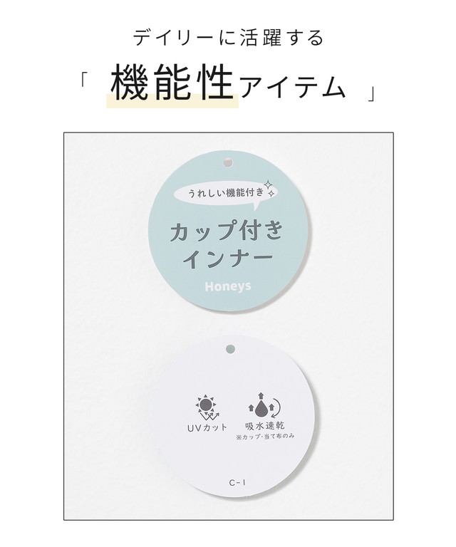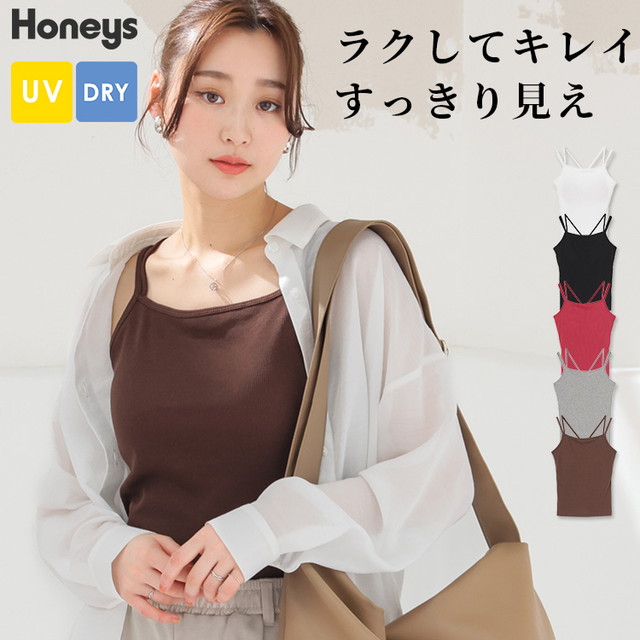 トップス キャミソール カップ付き UVカット 吸水速乾 ストレッチ テレコ素材 綿混 無地 ガーリー 夏 白 レディース Honeys ハニーズ カップ付キャミソール