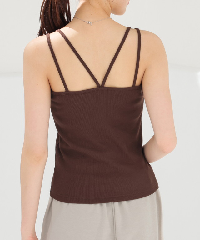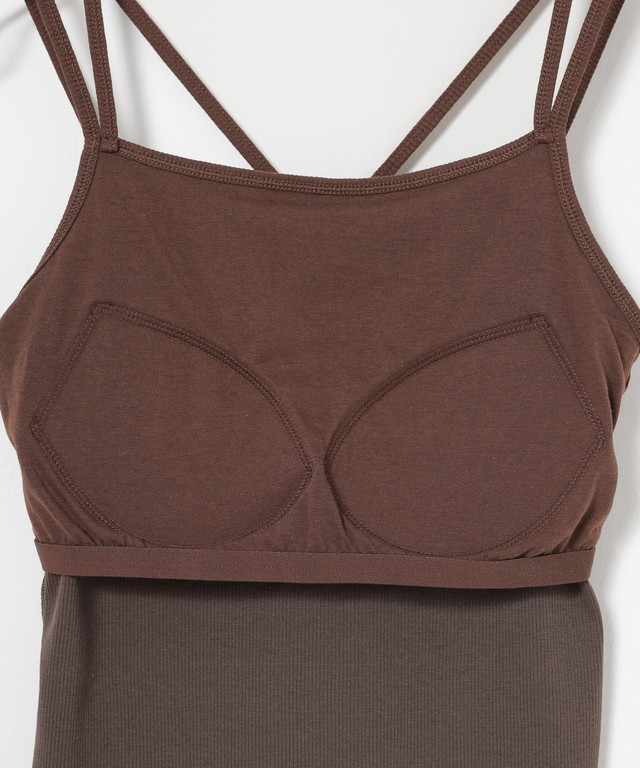 クッション性のあるソフトカップ付きで、バックのストラップがお洒落なデザイン。