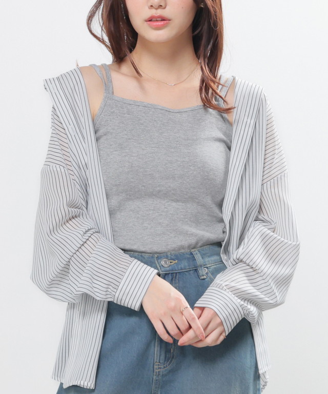 シアーシャツやメッシュ編みニットなど、透け感のあるアイテムと合わせてもお洒落見え♪