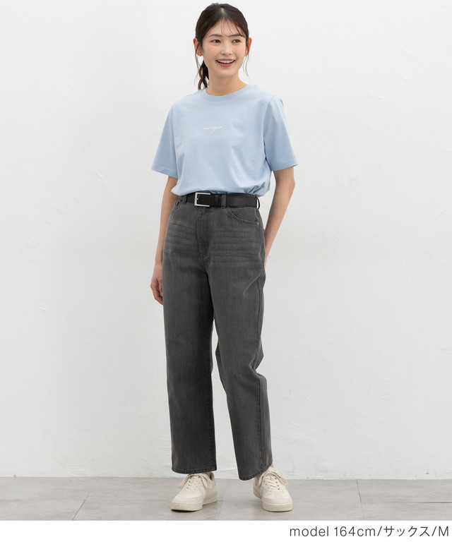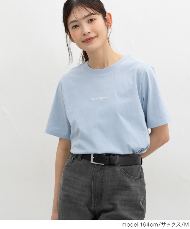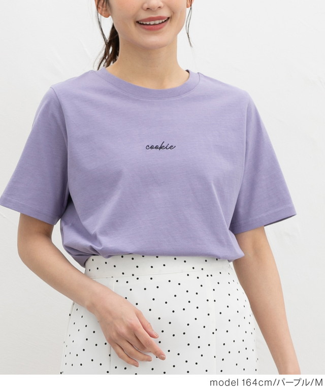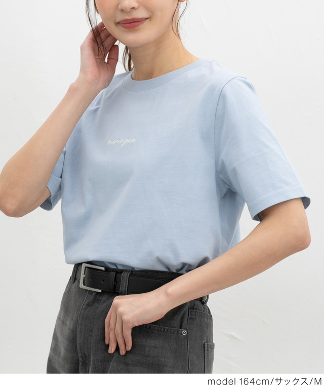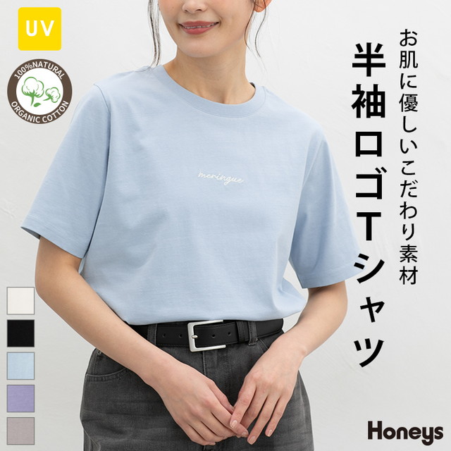 トップス Tシャツ 半袖Tシャツ カットソー 半袖 オーガニックコットン UVカット ロゴ 刺繍 こだわり綿 レディース Honeys ハニーズ こだわり綿半袖ロゴT