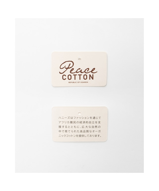 アフリカ難民の経済的自立を支援するとともに、3年以上農薬や化学肥料を使用していない農地で栽培された、環境に優しく肌触りもよい、高品質なオーガニックコットン100%素材。