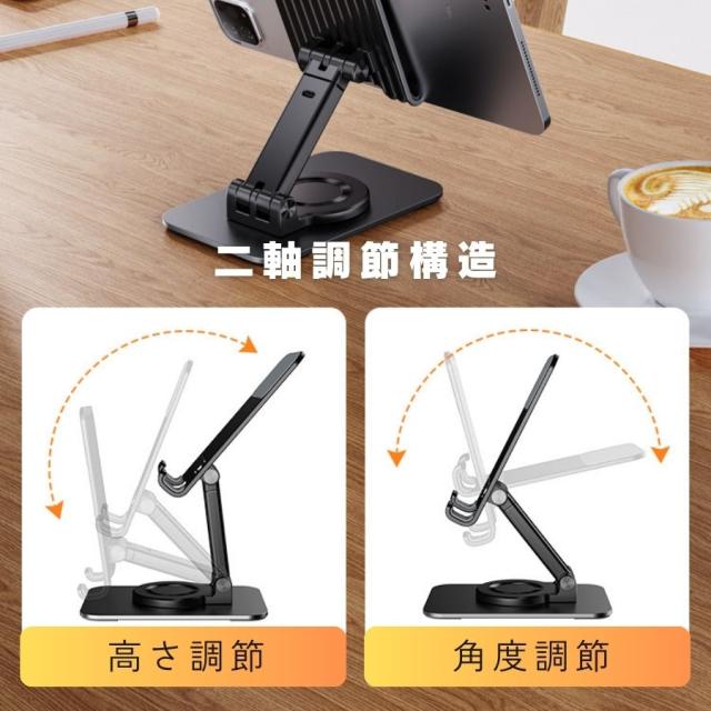 【双軸で180°角度調整】見たい高さ・角度にピタリと固定。横向きで映画、縦向きでビデオ通話と、あなたの好きな姿勢をキープできます。