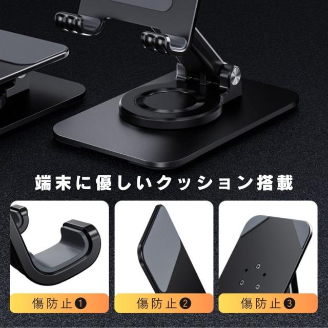 スマホスタンド タブレット対応 折りたたみ式 携帯便利 軽量188g 双軸で高さ調整30mm シリコン付きで落下防止 画面を隠さないサイドストップ カーボンスチール製 在宅ワーク・動画鑑賞・通話に