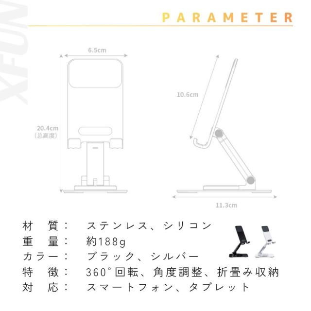 特 徴:360°回転、角度調整、折畳み収納