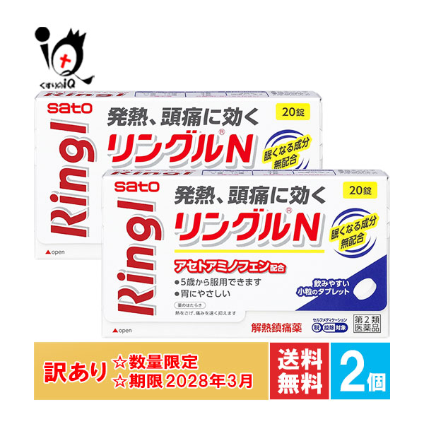 訳あり【第2類医薬品】★リングルN 20錠×2個セット【佐藤製薬】【使用期限2028年3月】つらい発熱・頭痛によく効く 眠くなる成分無配合 アセトアミノフェン基準内最大量配合 胃にやさしい 解熱鎮痛薬 歯痛 月経痛 生理痛 悪寒