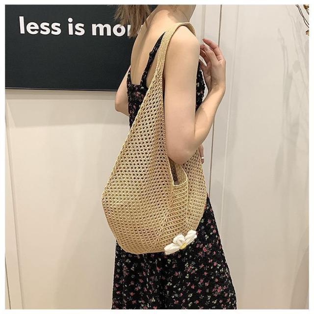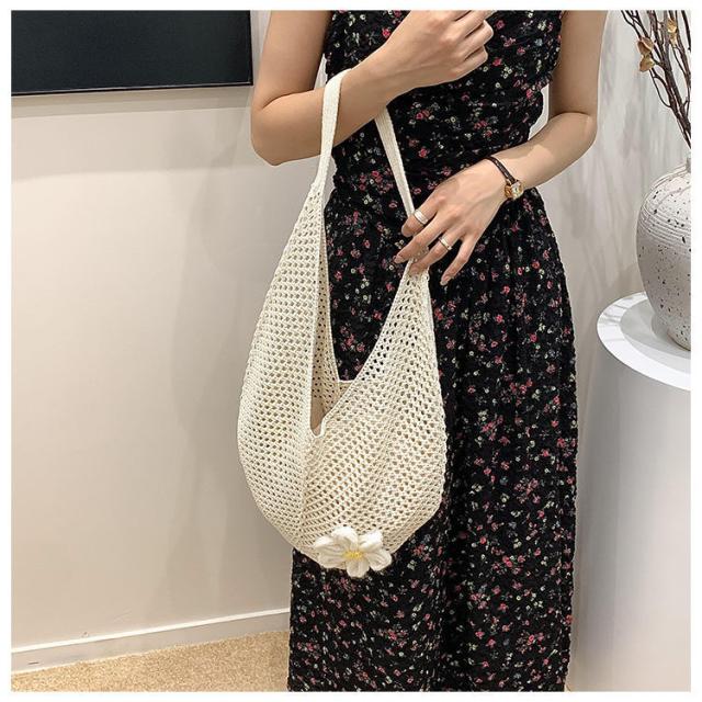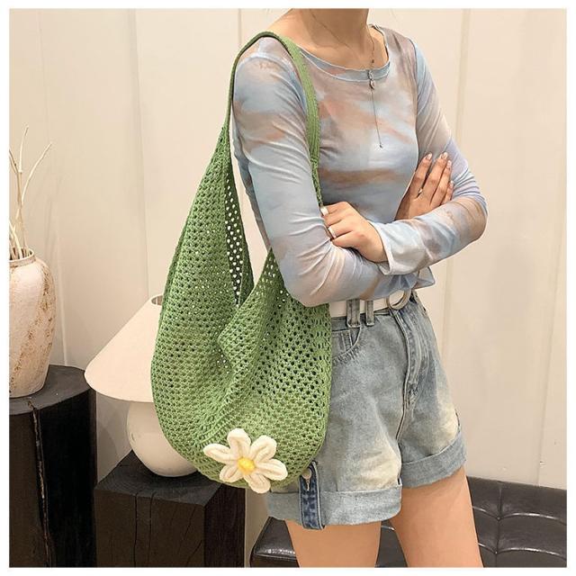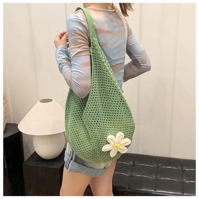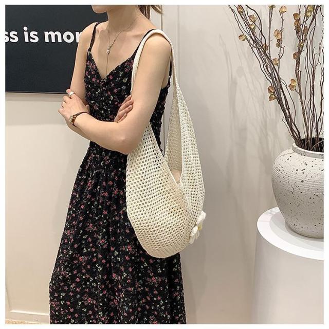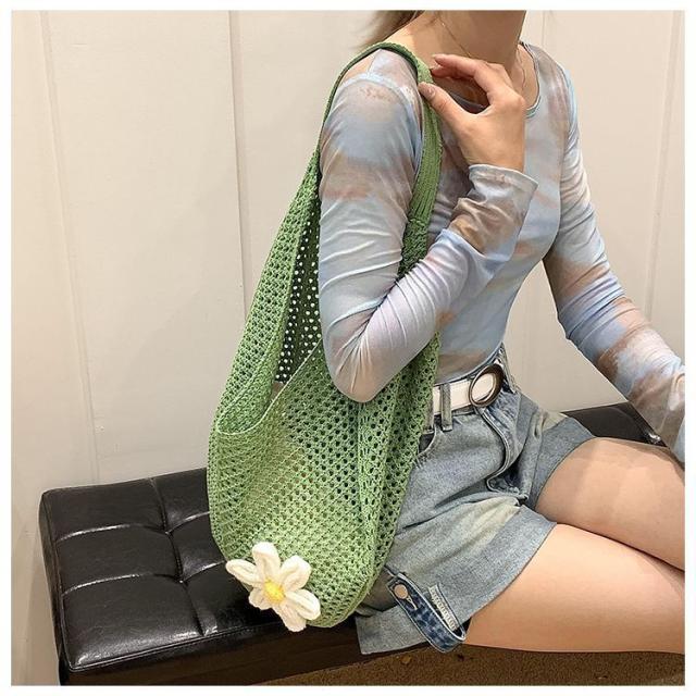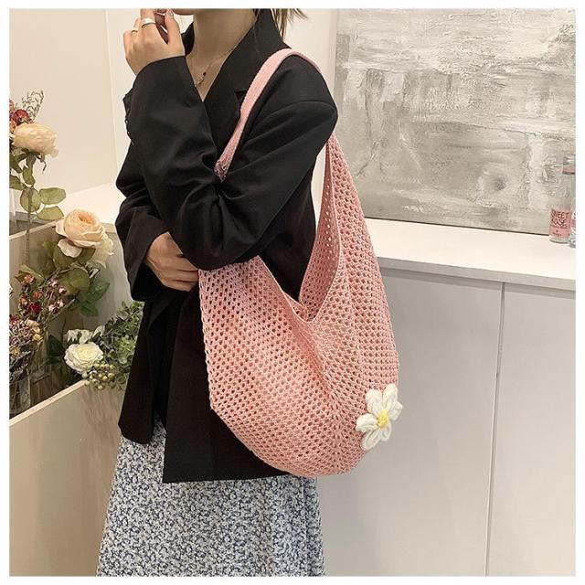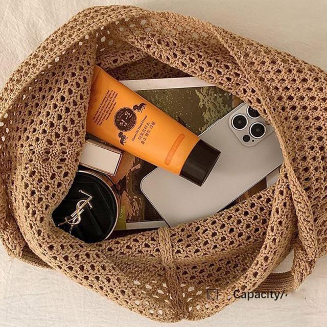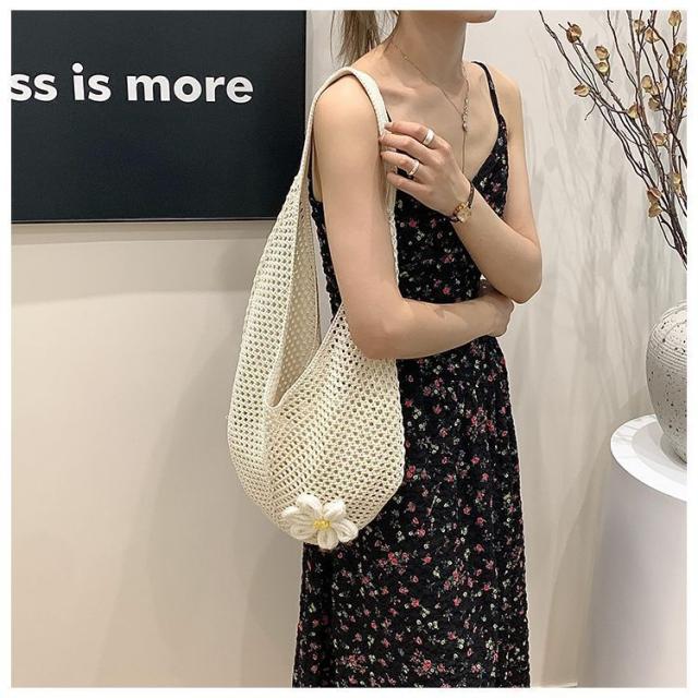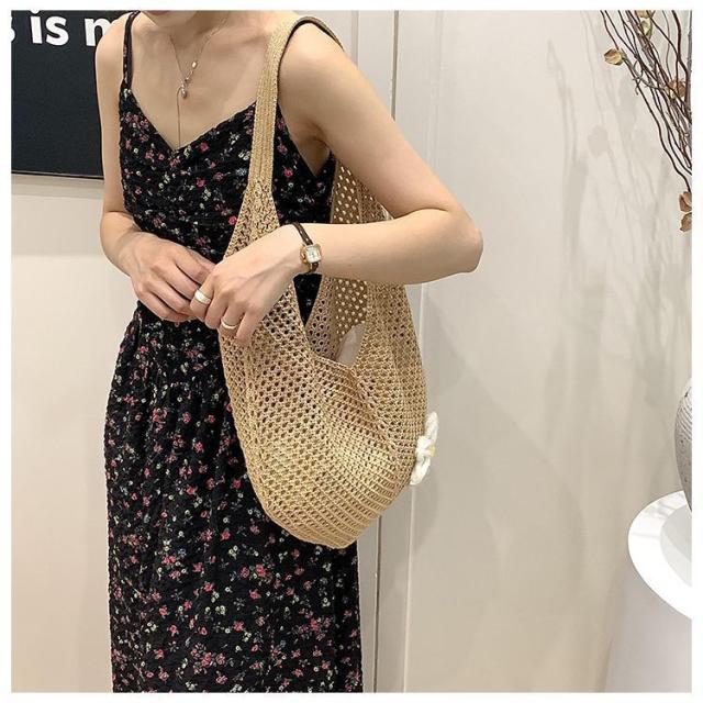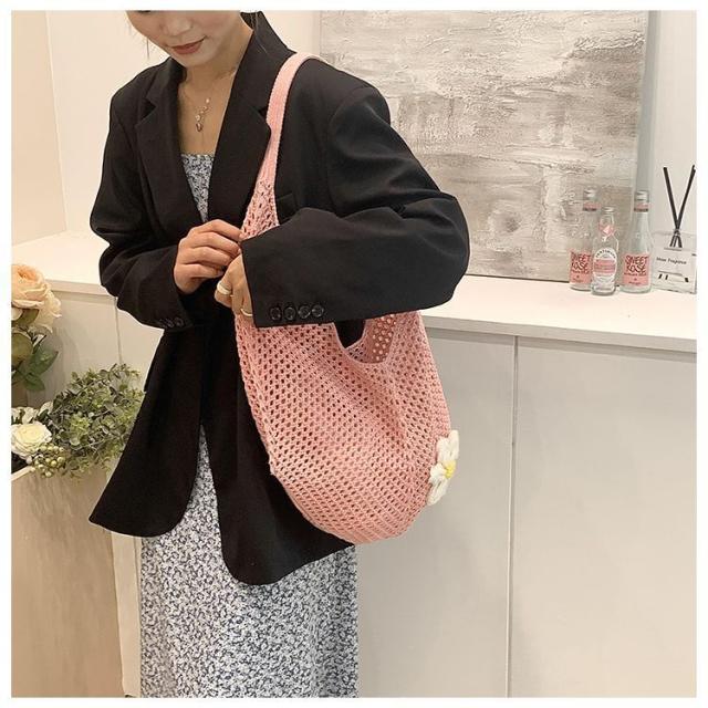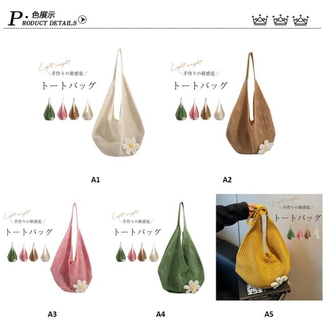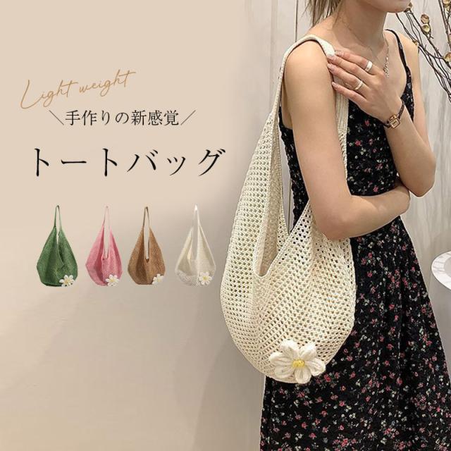 \手作りの新感覚トートバッグ/ショルダーバッグ トートバッグ ニットトートバッグ ニットバッグ bag 軽量 透かし編み 肩掛け