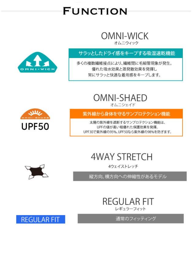 吸湿速乾機能「オムニウィック」により汗を素早く吸収・乾燥し、常にドライで快適な状態をキープします。