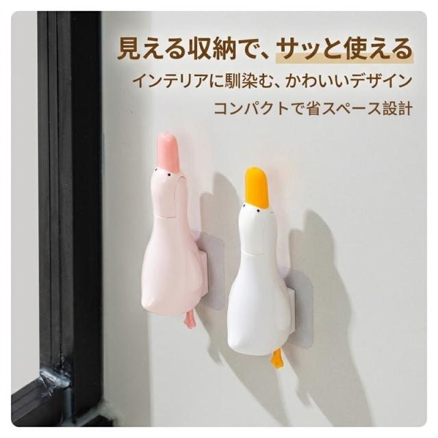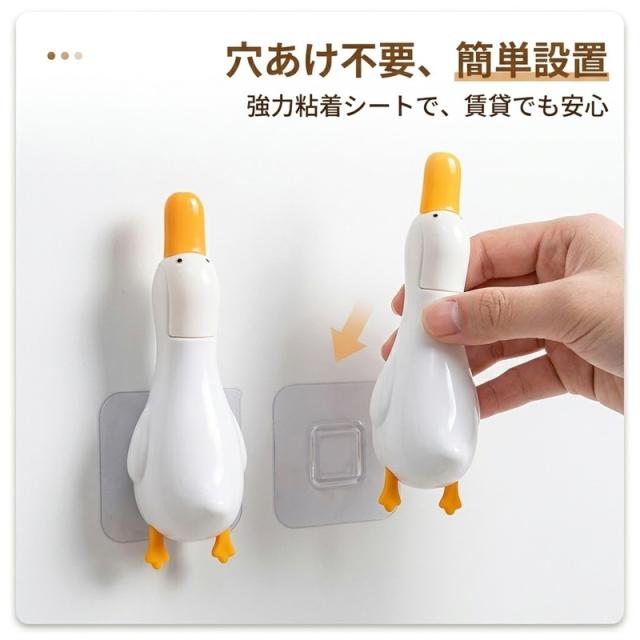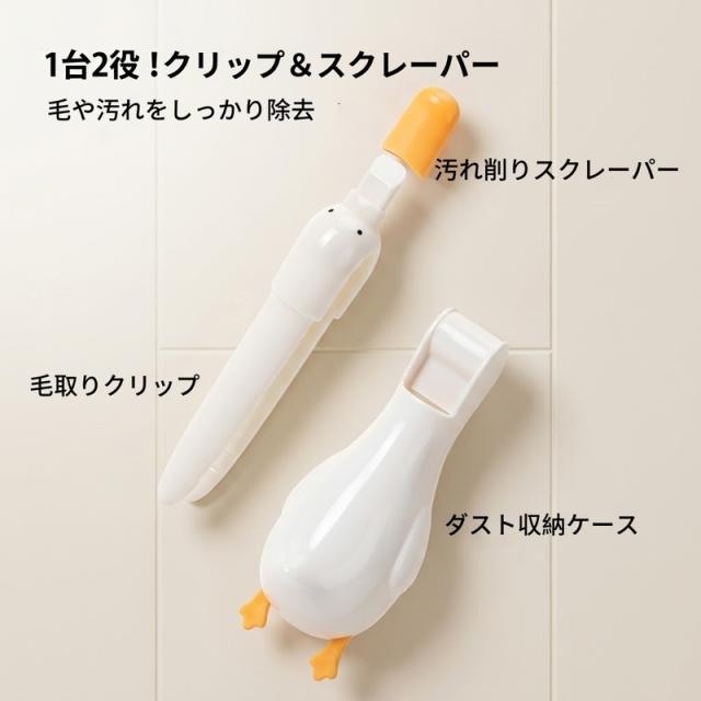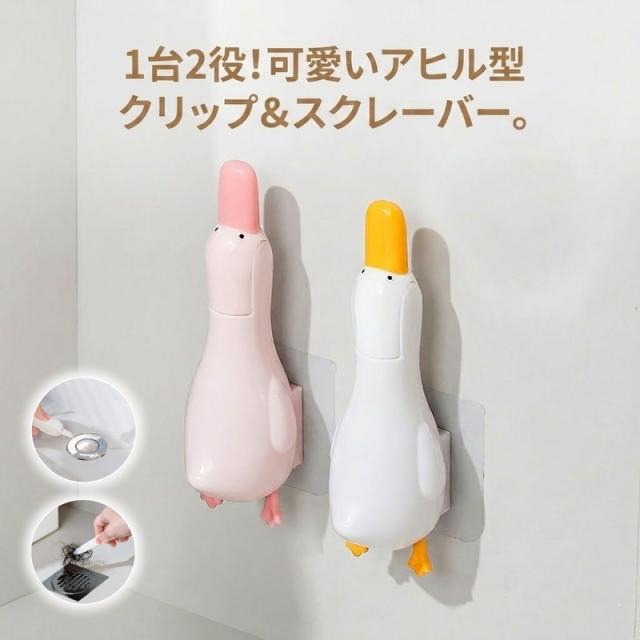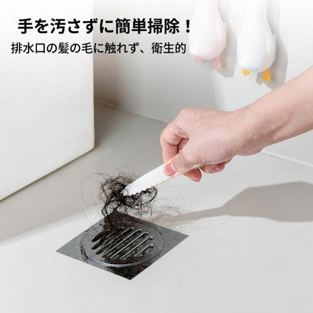 【2個セット】 排水口 ゴミ取り ピンセット 髪の毛 取り キャッチャー お風呂 洗面台 掃除 お風呂掃除 髪の毛取り クリップ ヘラ スクレーパー 浮かせる収納 壁掛け 穴あけ不要 アヒル かわいい 便利グッズ 手を汚さない 衛生的