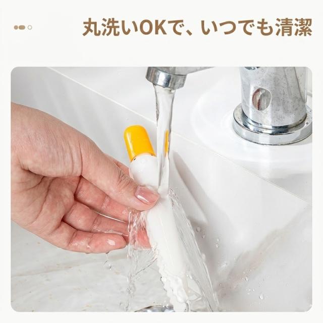 ・先端のヘラで頑固な汚れも削り落とせる2way