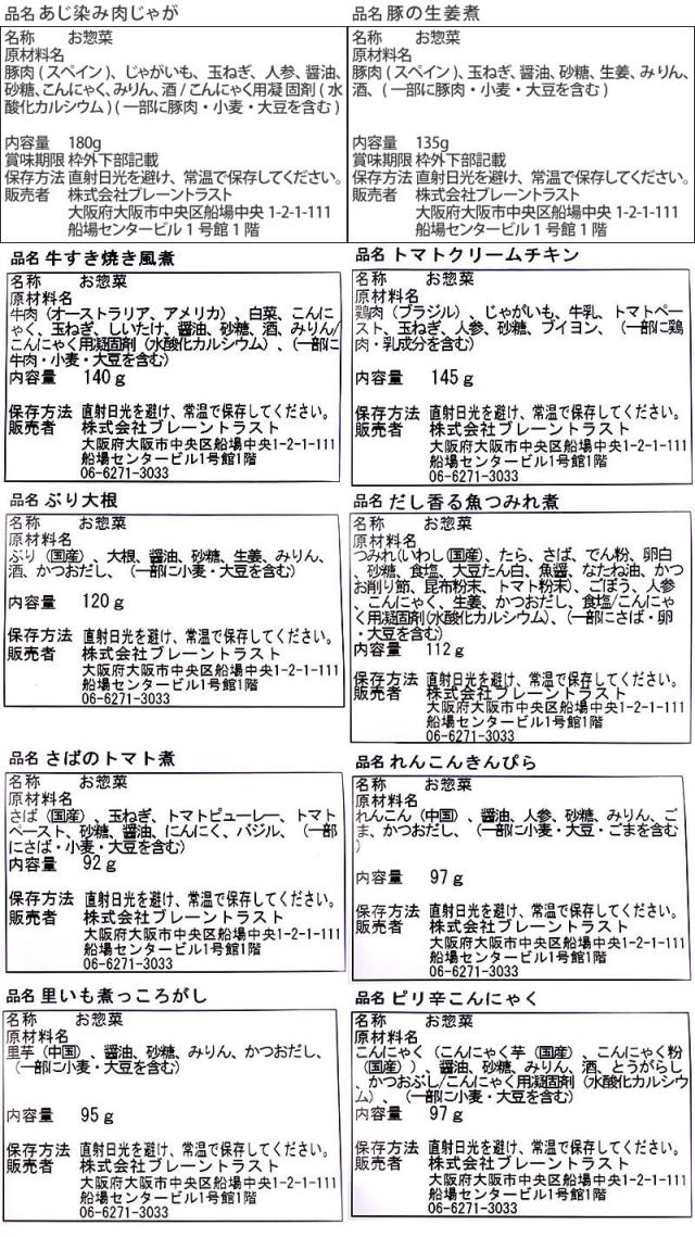 ■ ええおかず あじ染み肉じゃが 180g 豚の生姜煮 135g 牛すき焼き風煮145g トマトクリームチキン145g ぶり大根120g だし香る魚つみれ煮110g さばのトマト煮90g れんこんきんぴら100g 里いも煮っころがし95g ピリ辛こんにゃく100g 10種 10食 |