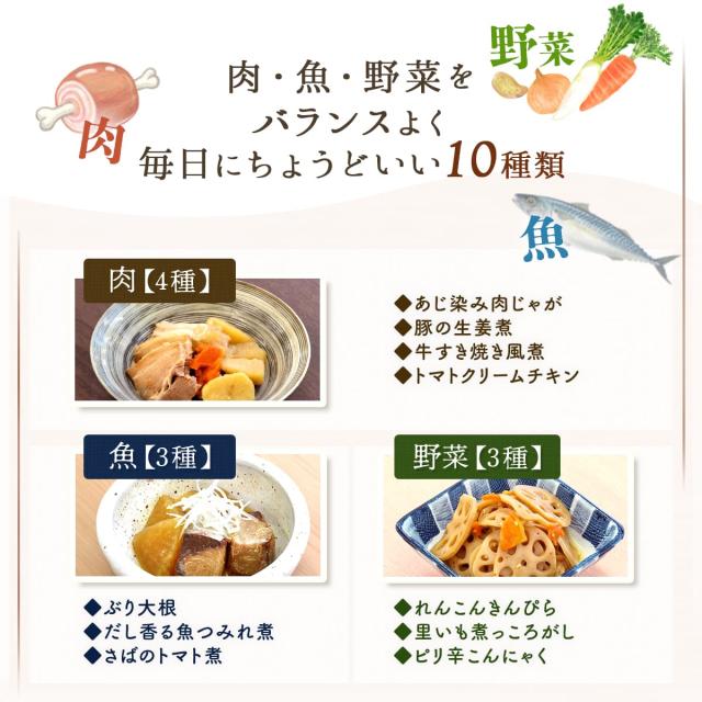 母の日 レトルト食品 常温 おかず 肉 魚 野菜 惣菜 10食 詰め合わせ セット 【 送料無料 沖縄以外】 ええもん広場 ええおかず レトルト 惣菜セット おかずセット レンジ 湯煎 食品 仕送り ご飯 備蓄 非常食 保存食 2026 新生活 内祝い ギフト