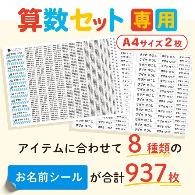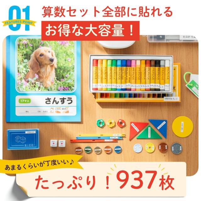 A4 + A4 算数セットシール シンプル 大容量937枚 入学準備 算数セット/小学校 食洗機 レンジ 防水 漢字★おなまえシール/お名前シール/