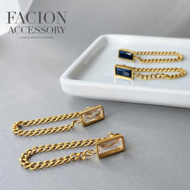 送料無料 ビジューストーンステンレスチェーンピアス アレルギー対応 つけっぱなし レディース 金属アレルギー サージカルステンレス 女性 ゴールド クリア ブラック パーティー 二次会 結婚式