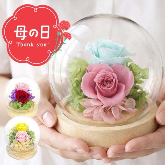 母の日 早割 花とセット 花ギフト 花 プレゼント 女性 30代 40代 50代 60代 プリザーブドフラワーガラスドーム 枯れない お手入れ不要 かわいい おしゃれ