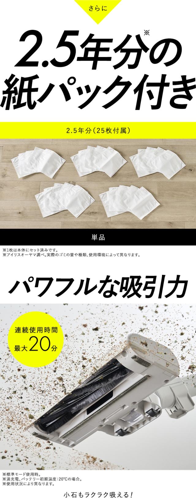 (検索用:掃除機・コードレス・紙パック式掃除機・軽量・紙パック式・クリーナー・充電式・紙パック・スティッククリーナー・スティック掃除機・ゴミ捨て・簡単・ハンディ・アタッチメント・自走式・パワーヘッド・充電スタンド・置くだけで充電・4967576795432・アイリスオーヤマ)