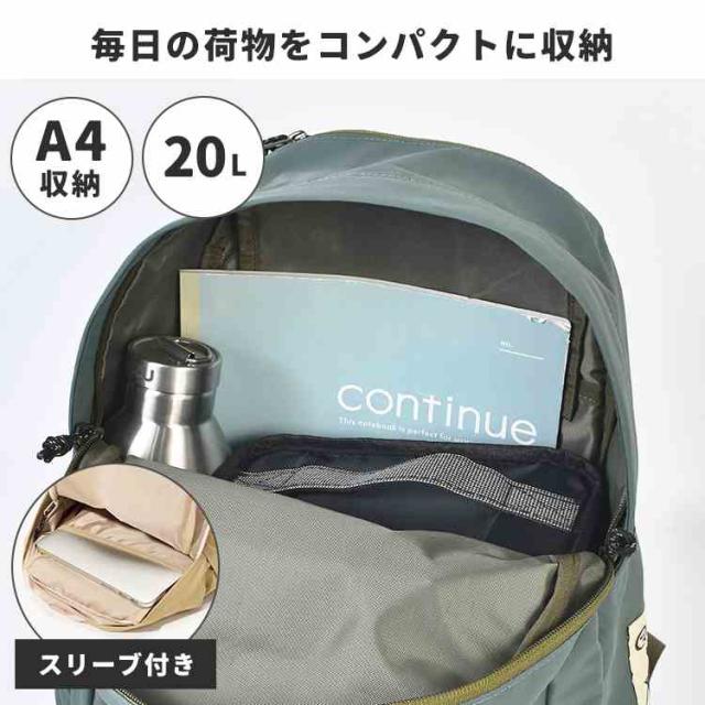 A4サイズがしっかり入る20Lの使いやすい容量で、通勤・通学からアウトドア・旅行まで幅広く活躍します。