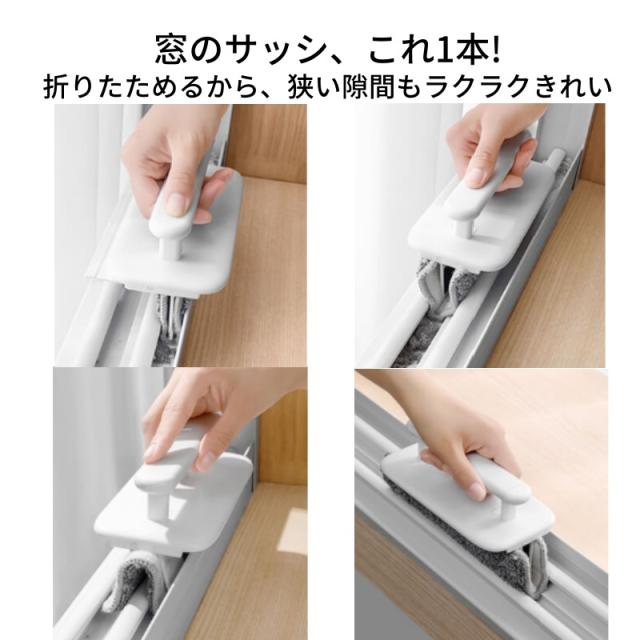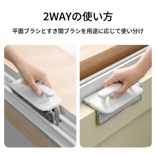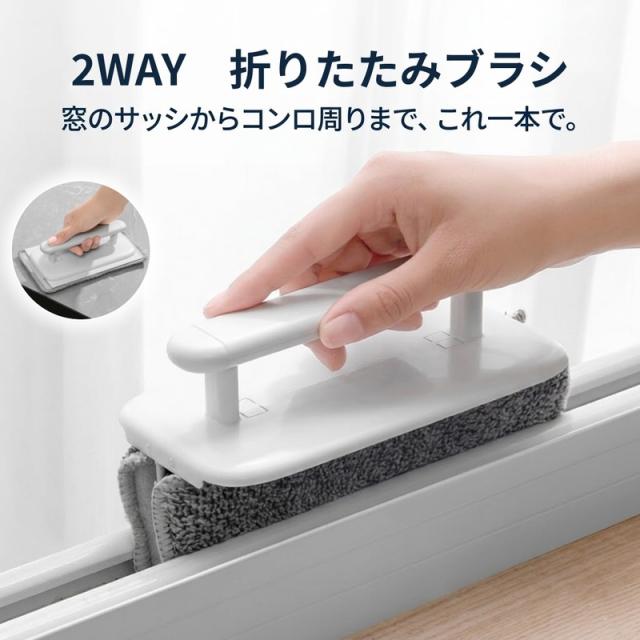 サッシ ブラシ 掃除 隙間掃除ブラシ 窓 サッシ 溝 掃除グッズ 折りたたみ 2WAY 乾湿両用 クロス 洗える 繰り返し使える キッチン コンロ タイル ガラス 洗面所 トイレ 大掃除 便利グッズ ホワイト