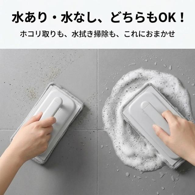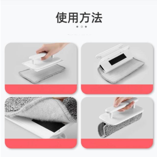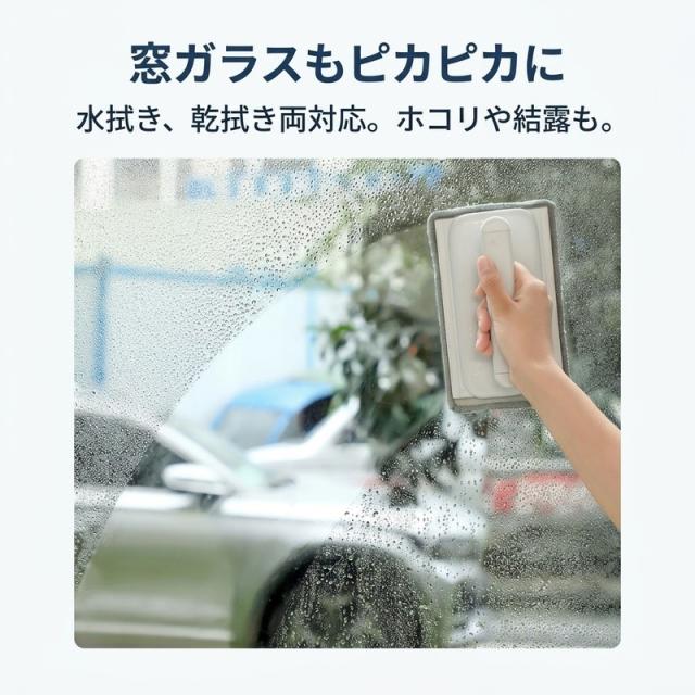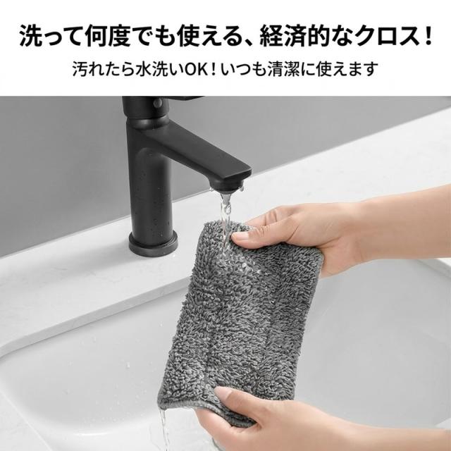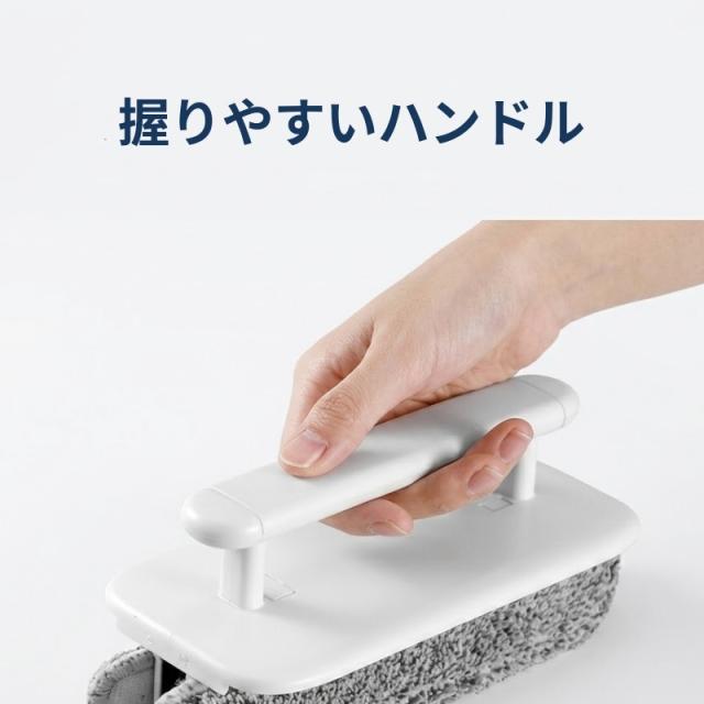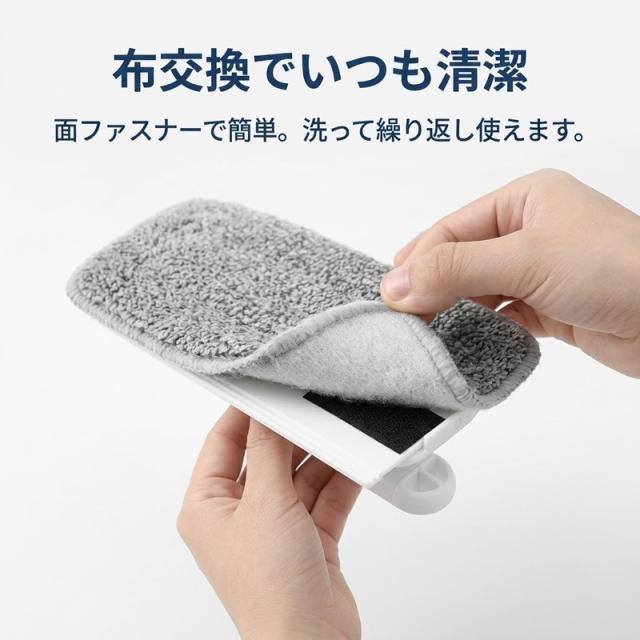 柔らかく汚れをしっかり絡め取る起毛素材を採用。クロスは面ファスナーで簡単に着脱でき、汚れたら水洗いして何度でも使えます。