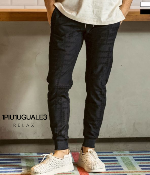 1PIU1UGUALE3 RELAX ウノピゥウノウグァーレトレ リラックス ランダムハウンドトゥースジャガードパンツ メンズ カジュアル 春夏 ジョガーパンツ ルームウェア
