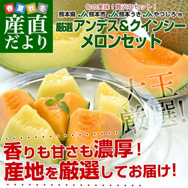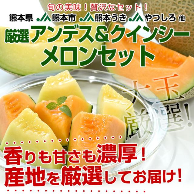 熊本県から産地直送 厳選メロンセット アンデスメロン&クインシーメロン 大玉3Lサイズ 優品以上 約2.5キロ (2玉入) 送料無料 JA熊本市 JA熊本うき JAやつしろ 他【発送時期:カート内に記載しております】