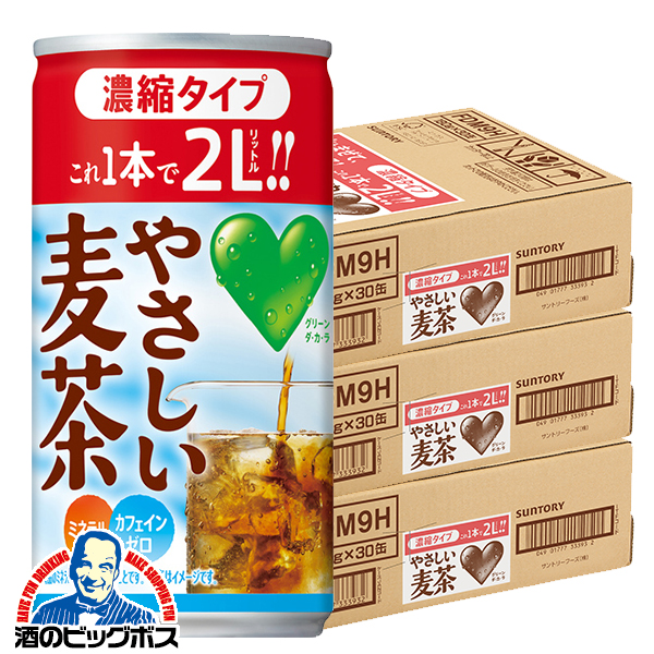送料無料 希釈用 むぎ茶 サントリー グリーンダカラ やさしい麦茶 濃縮タイプ缶 180g×3ケース/90本《090》『SUF』 カフェインゼロ