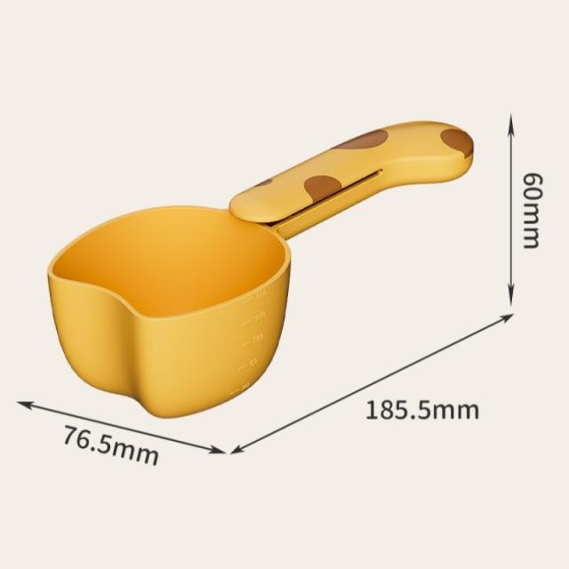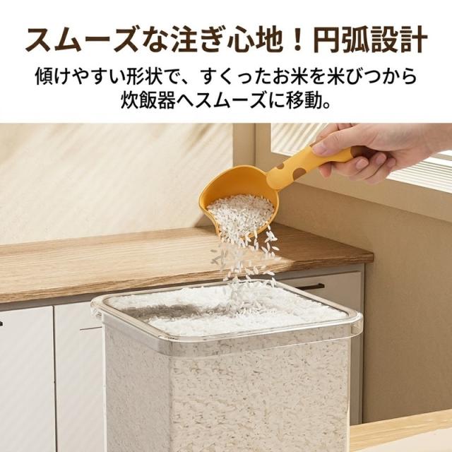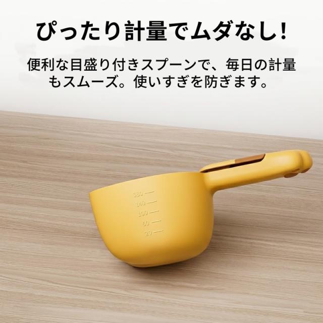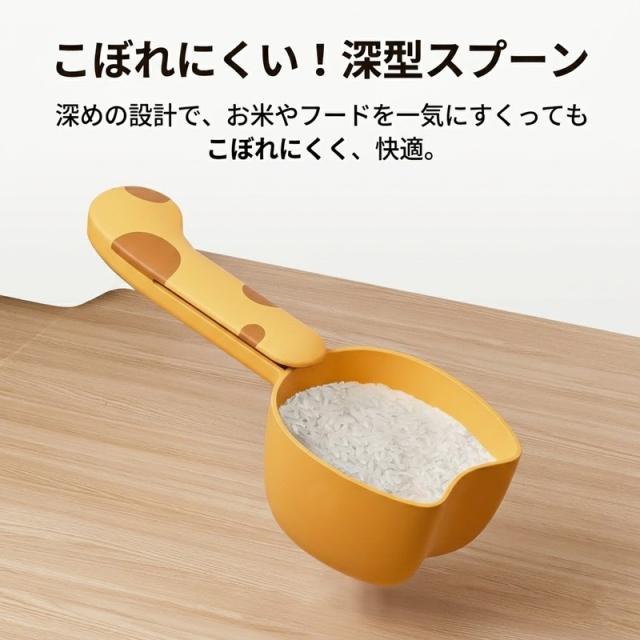 こぼれにくい深型:丸みを帯びた猫型のカップは深く作られており、粉物や雑穀もサッとすくってこぼさず注げます。