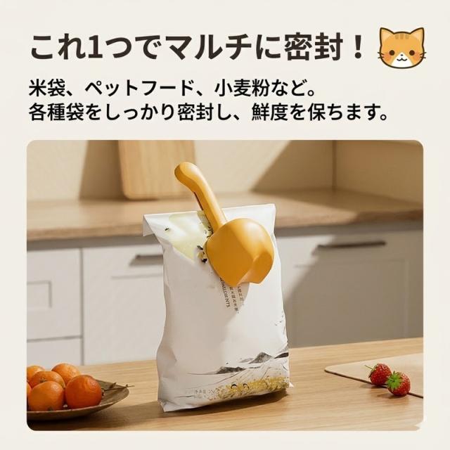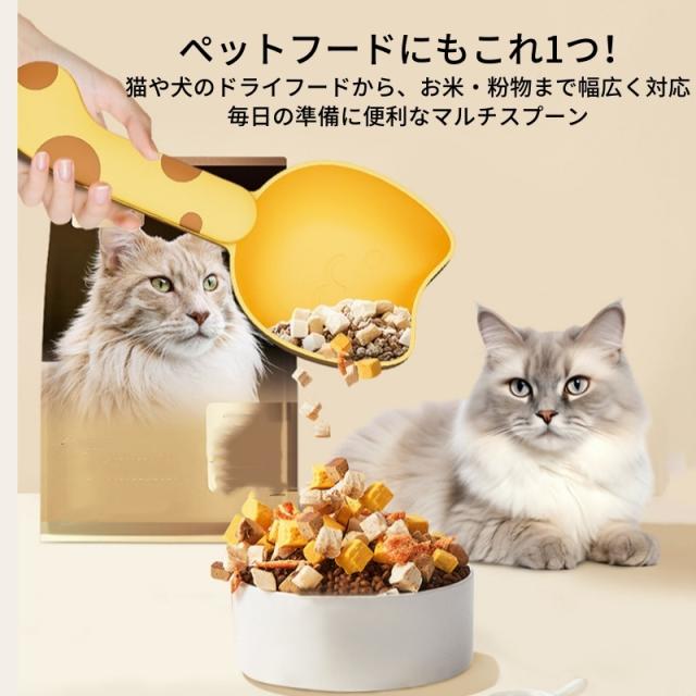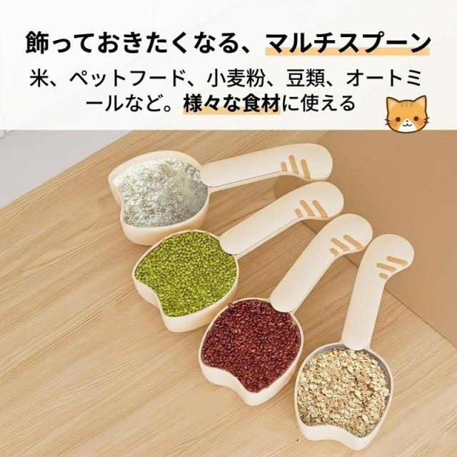 計量スプーン クリップ付き フードスコップ 目盛り付き 計量カップ 猫型 お米 小麦粉 雑穀 キャットフード ドッグフード お菓子 袋留め クリップ 袋留め 袋止め 保存 便利グッズ キッチン用品 かわいい おしゃれ