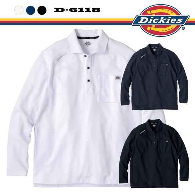 ディッキーズ Dickies 長袖ポロシャツ T/C 鬼鹿の子 (オニカノコ) D-6118 [ワークウェア 作業服 長袖ポロ ゆったり シンプル 無地 刺繍ロゴ カジュアル おしゃれ ひんやり 接触冷感 消臭 UVカット DICKIES]