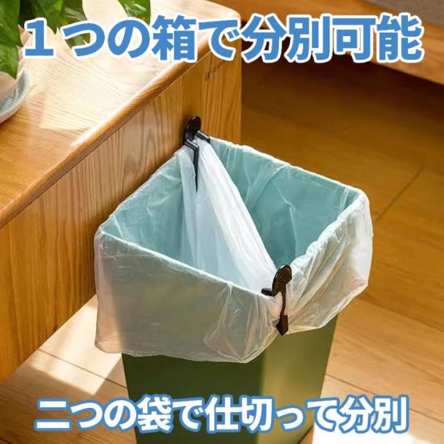 また二つの袋をセットし仕切ることで、1つのゴミ箱でも簡単に分別が可能。