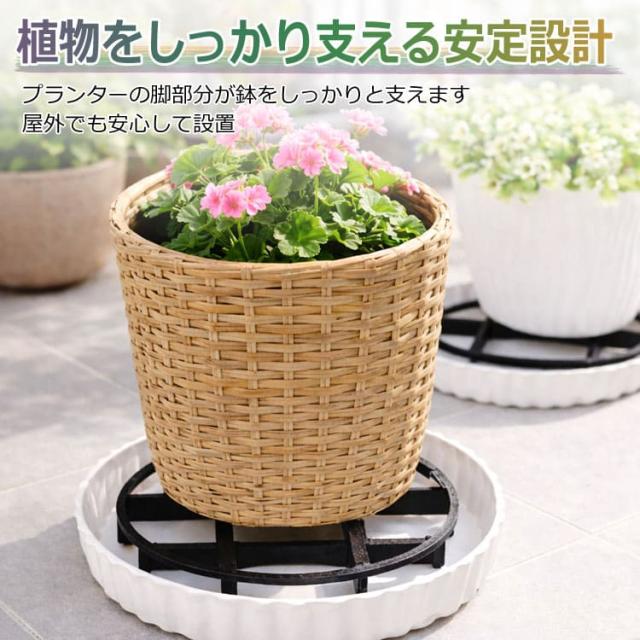 プランターの脚部分が鉢をしっかりと支えます。屋外でも安心して設置できます。