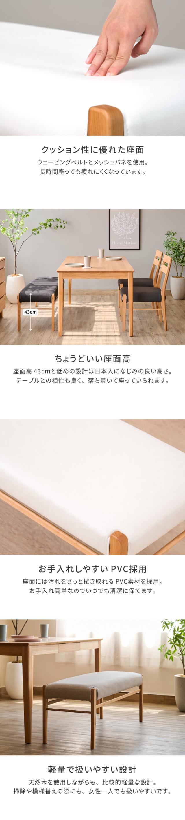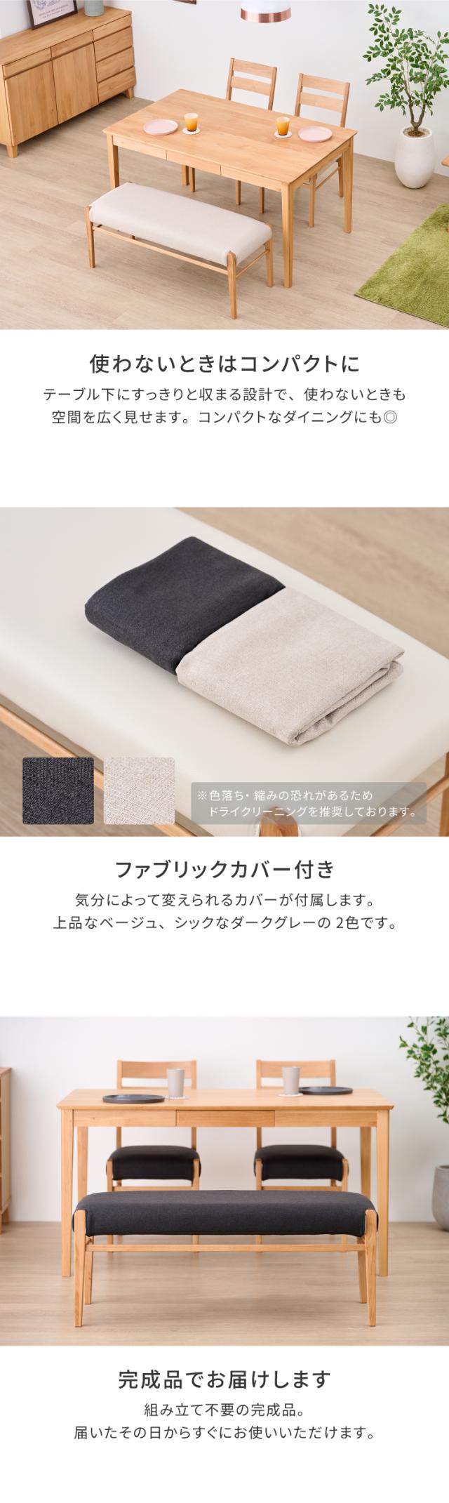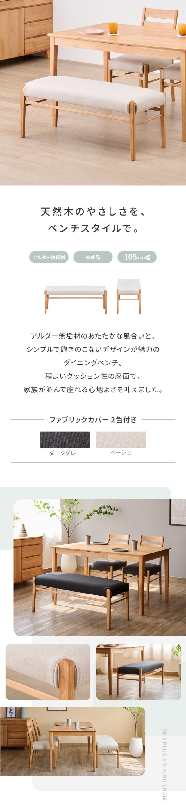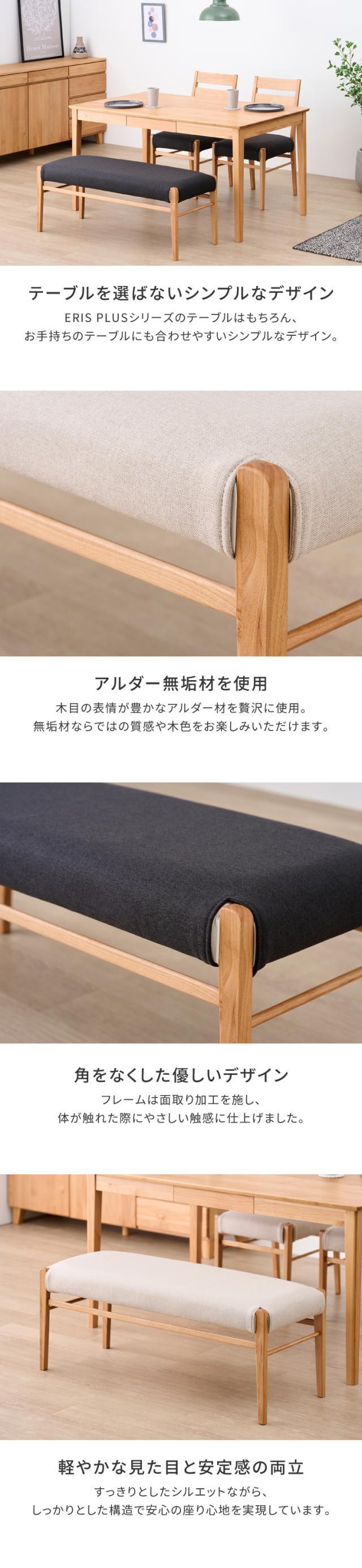 ダイニングベンチ ベンチ ベンチチェア ベンチソファ 長椅子 椅子 いす イス チェア チェアー 2人掛け カバー 木製 天然木 布 合皮 白 シンプル 北欧 ナチュラル 食事 食卓 品質保証 ERIS PLUS ISSEIKI
