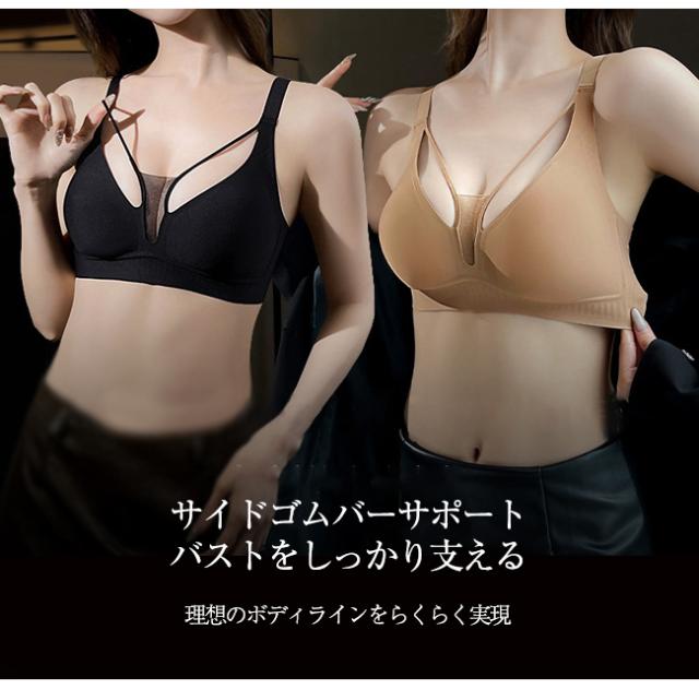 ノンワイヤーブラ バストアップ 盛れるブラ ナチュラル盛り 美胸 ブラジャー レディース メッシュ 透け感 ナイトブラ兼用 ノンワイヤー バストケア パッド付き 補正下着 ブラ ホワイト / ブラック 通気性 快適 着用感 デイリーブラ