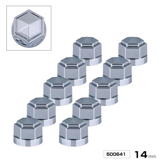 ●トラック用 角型 リヤハブナットカバー 10ヶ入 14mm ABSクロームメッキ 2トン用 500641